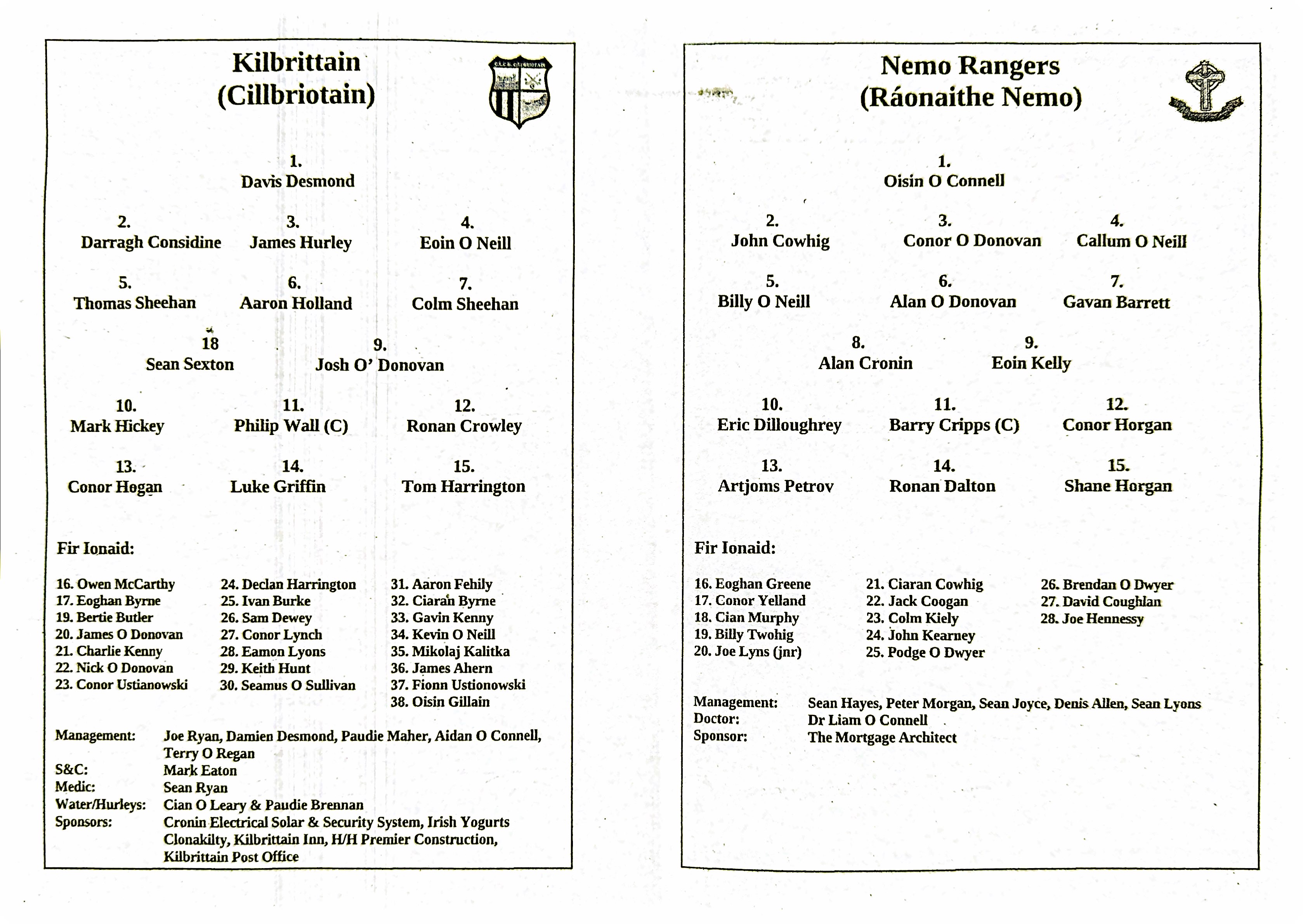 Teamsheets for Co-op Superstores Premier Junior Hurling Championship Round 3