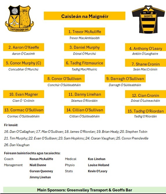 The Castlemagner team who were defeated by Nemo Rangers in the Junior A Football County Championship Quarter Final